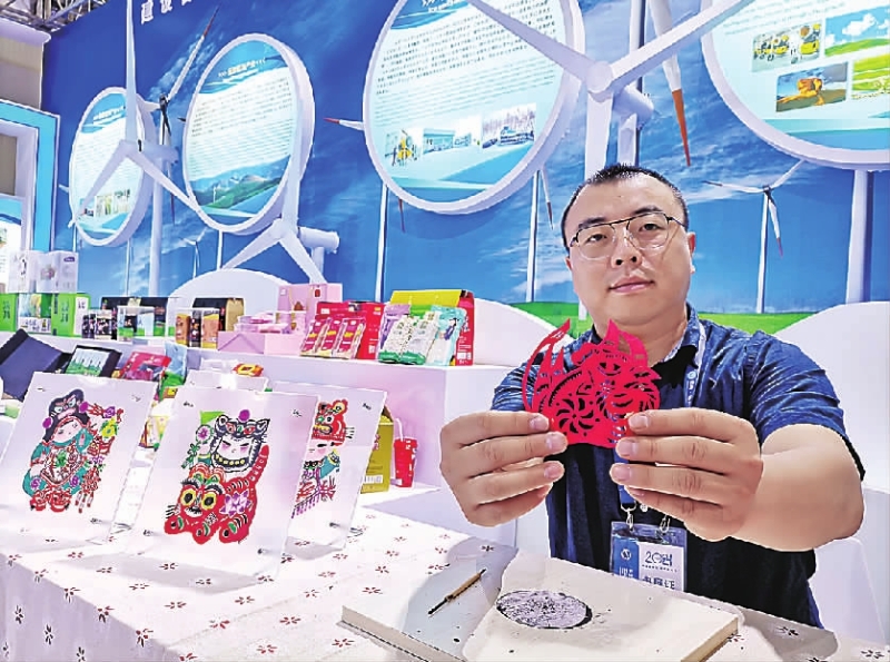 5月18日,為期四天的 “2021年中國(guó)·廊坊國(guó)際經(jīng)濟(jì)貿(mào)易洽談會(huì)”在廊坊國(guó)際會(huì)議展覽中心開(kāi)幕,張家口市設(shè)置了第五屆冬奧冰雪產(chǎn)業(yè)和張家口重點(diǎn)產(chǎn)業(yè)鏈兩個(gè)展廳。圖為現(xiàn)場(chǎng)創(chuàng)作蔚縣剪紙。和穎攝影報(bào)道