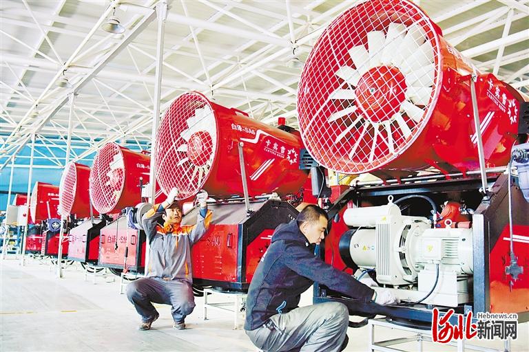 近日,宣化區(qū)冰雪產(chǎn)業(yè)園內(nèi)的卡賓滑雪裝備制造有限公司,工人們正在造雪機(jī)裝配生產(chǎn)線上工作。 通訊員陳曉東攝