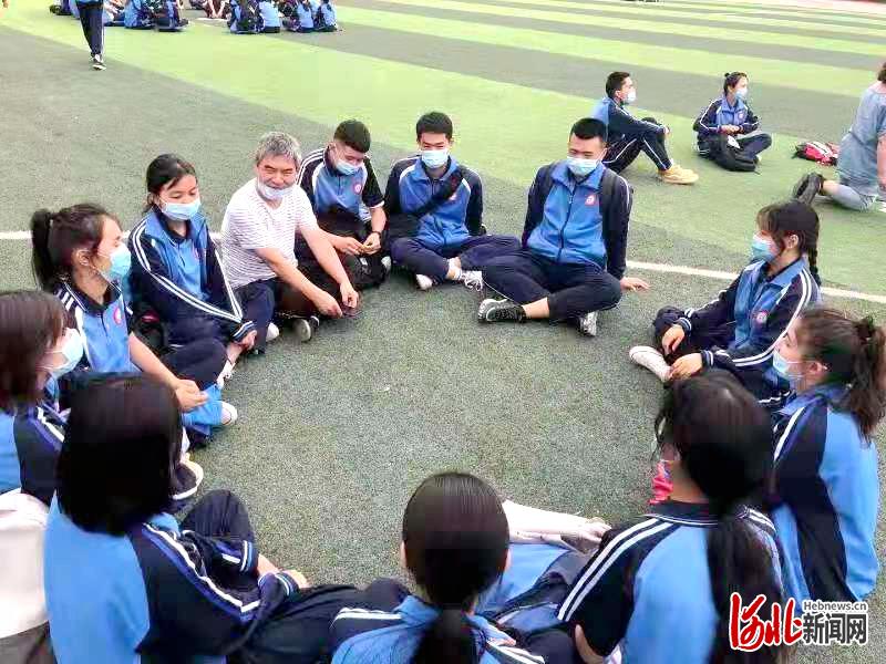 圖為劉滿老師和高三畢業(yè)班學(xué)生參與考前心理解壓輔導(dǎo)活動。