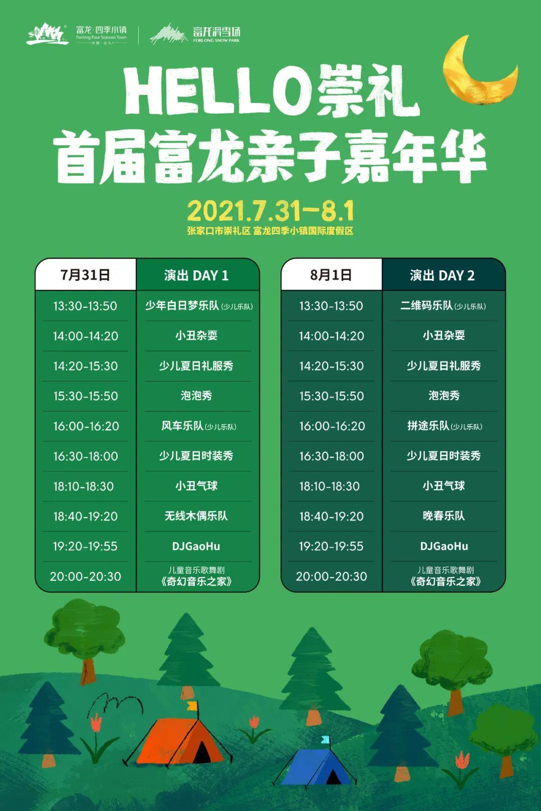 久違的音樂現(xiàn)場,就要再度和大家見面啦!屆時我們相約富龍四季小鎮(zhèn),聽最帶勁的音樂,看最溫馨的兒童劇,玩最酷的越野項目,吃自己烤的羊腿兒。充氣城堡、戶外蹦床、草地滑車、泡泡足球、小丑魔術(shù)等等等等(詳見下面介紹)玩樂項目,是暑假帶娃度假的最佳去處,來吧,這次我們還是,崇禮見!