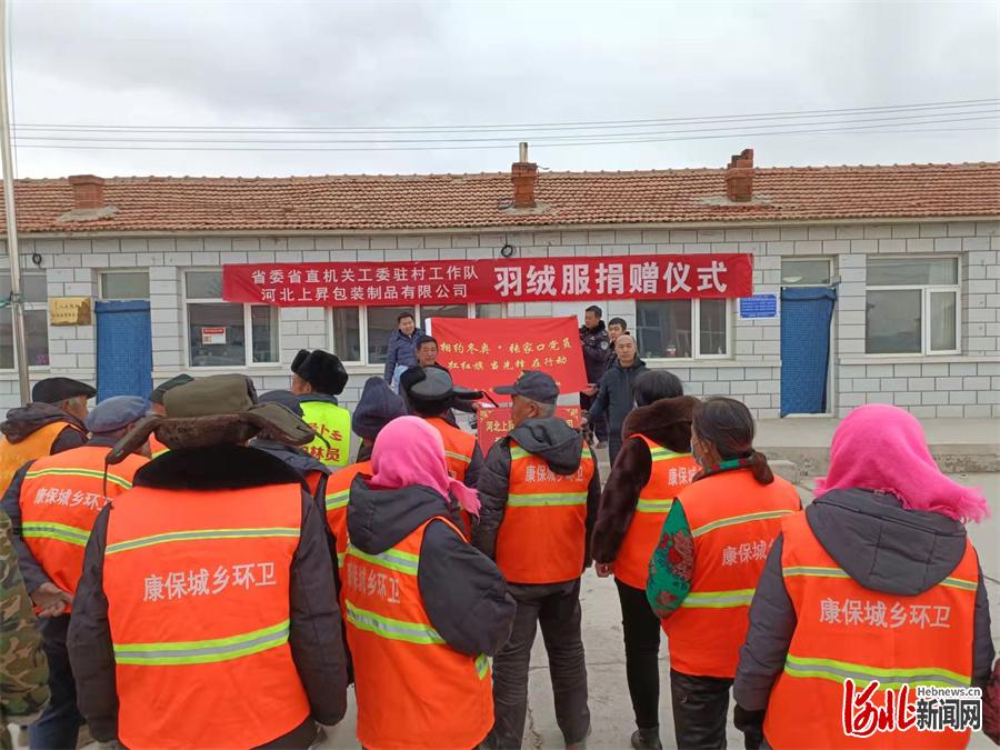 2022年1月28日,河北省直工委駐康?h二號卜鄉(xiāng)八大股村工作隊與河北上昇包裝制品有限公司共同組織羽絨服捐贈活動。