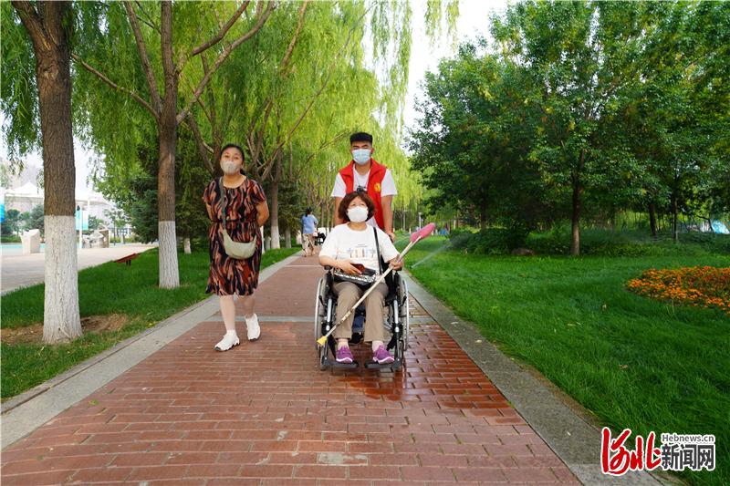 圖為助殘志愿者幫助肢體殘疾人徒步行走。張家口市殘聯(lián)供圖