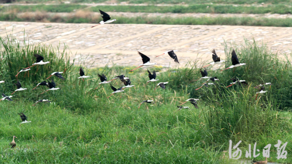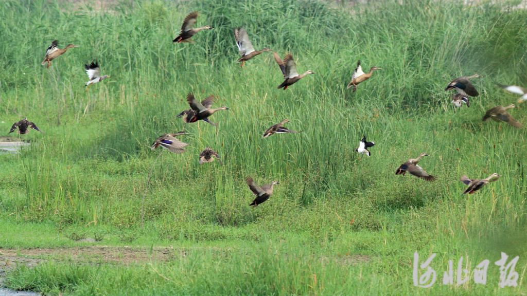 7月29日,張家口洋河濕地公園內(nèi)在此繁殖的鳥(niǎo)兒自由自在地覓食、嬉戲、飛翔,成為當(dāng)?shù)匾坏烂利惖纳鷳B(tài)景觀。河北日?qǐng)?bào)、河北日?qǐng)?bào)客戶(hù)端通訊員趙永春攝