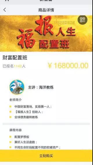 “福報(bào)人生”推送課程標(biāo)價(jià)168000元,已有上千人報(bào)名。