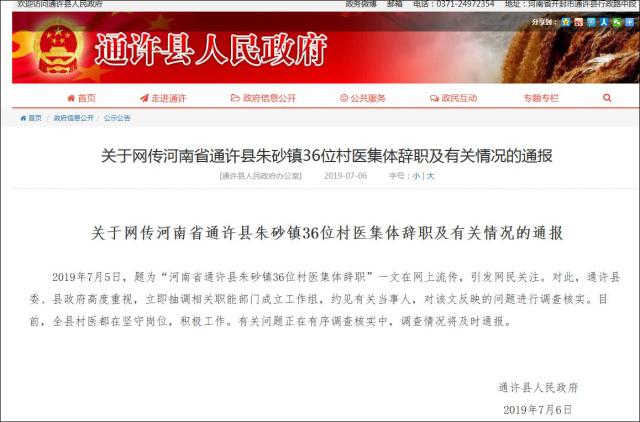 7月6日,通許縣人民政府官網(wǎng)發(fā)布通報稱,縣委、縣政府高度重視,立即抽調(diào)相關(guān)職能部門成立工作組,約見有關(guān)當(dāng)事人,對該文反映的問題進(jìn)行調(diào)查核實。