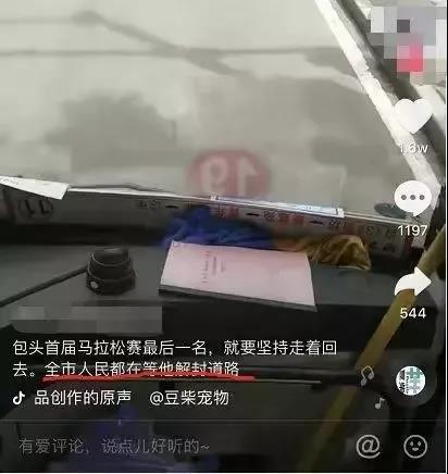 “嘲笑”視頻配文稱最后一名參賽者堅持走完,但“全市人民都在等著他解封道路。”言下之意,是這名參賽者“不懂事”,而“勸退”是為了早點恢復(fù)全市交通。作者還稱,因為沒到關(guān)門時間,因此不能強(qiáng)制要求選手結(jié)束比賽,只能“勸退”。