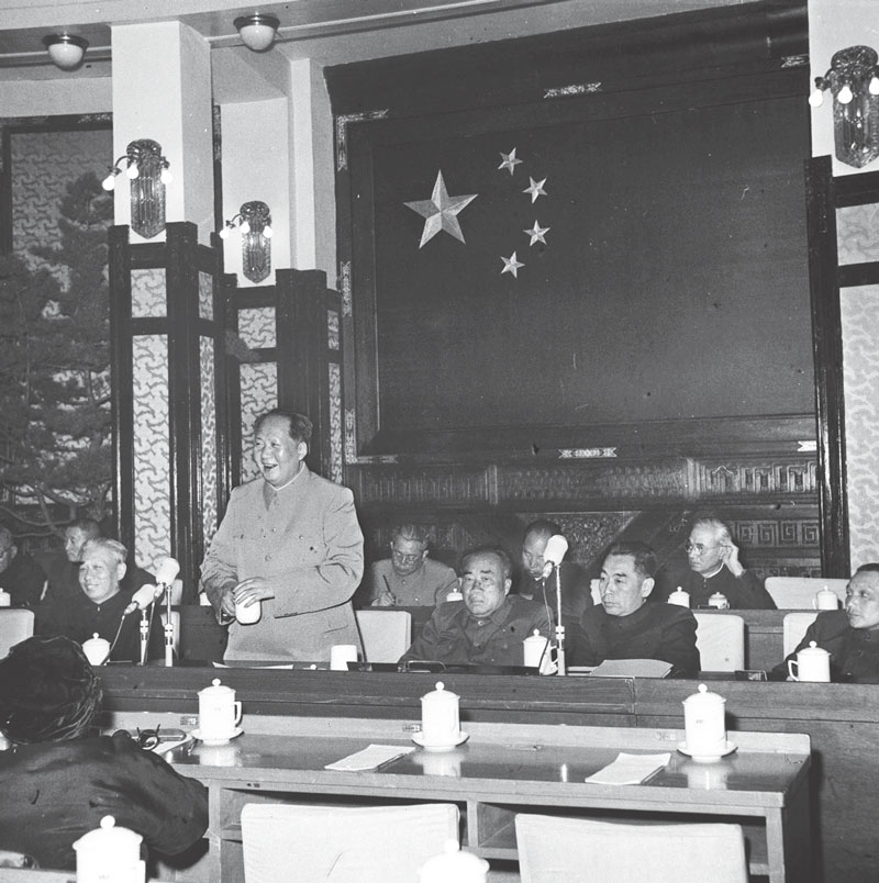 從1955年下半年到1956年初,我國(guó)生產(chǎn)資料的社會(huì)主義改造進(jìn)入高潮,社會(huì)主義經(jīng)濟(jì)建設(shè)也有了幾年的實(shí)踐經(jīng)驗(yàn),對(duì)于蘇聯(lián)經(jīng)濟(jì)建設(shè)中的一些缺點(diǎn)和問題也逐步有所了解。以蘇為鑒,總結(jié)自己的經(jīng)驗(yàn),探索一條適合中國(guó)國(guó)情的建設(shè)社會(huì)主義道路的任務(wù),已經(jīng)擺在黨的面前。毛澤東關(guān)于十大關(guān)系的思想,就是在這樣的背景下產(chǎn)生的。圖為1956年5月2日,毛澤東在最高國(guó)務(wù)會(huì)議上進(jìn)一步闡述十大關(guān)系。 新華社發(fā)(資料照片)