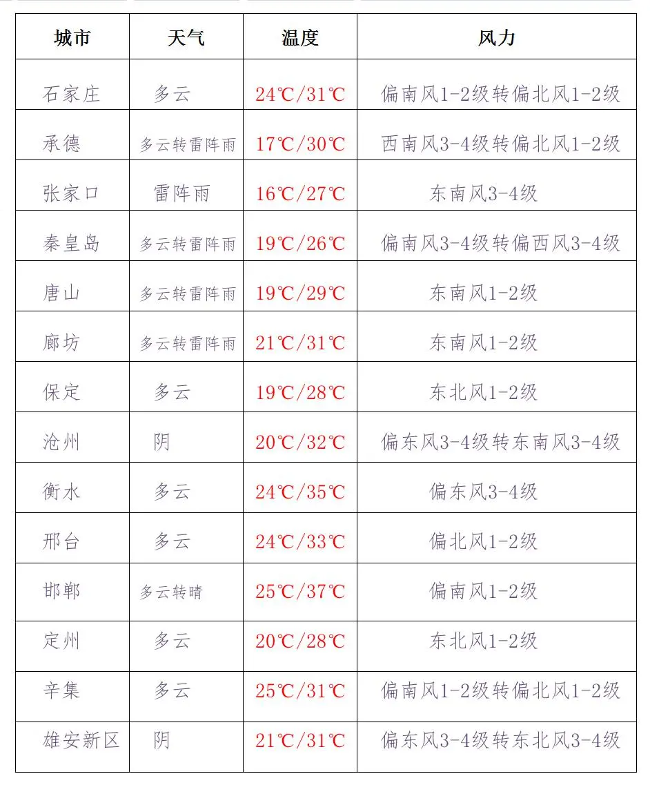 河北省主要城市預(yù)報