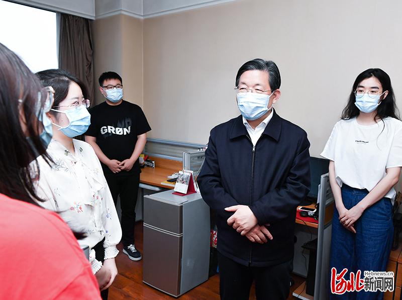 6月23日,省委書記、省人大常委會主任王東峰在雄安新區(qū)調(diào)研檢查。這是王東峰在雄安新區(qū)規(guī)劃研究中心、城市規(guī)劃設(shè)計(jì)研究院,親切看望工作人員。河北日報(bào)記者趙威攝