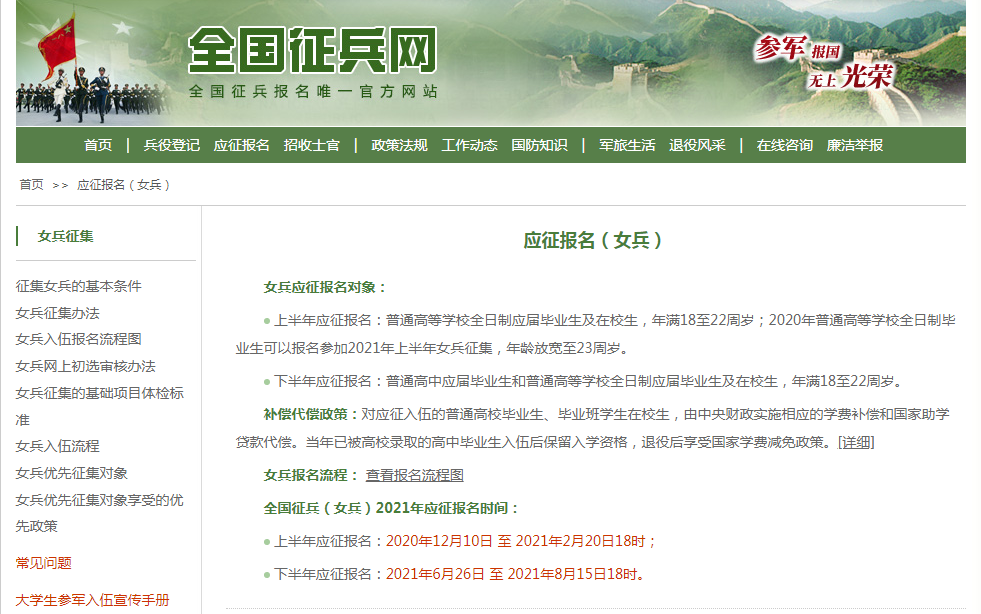6月26日,2021年下半年女兵應(yīng)征報(bào)名開始!