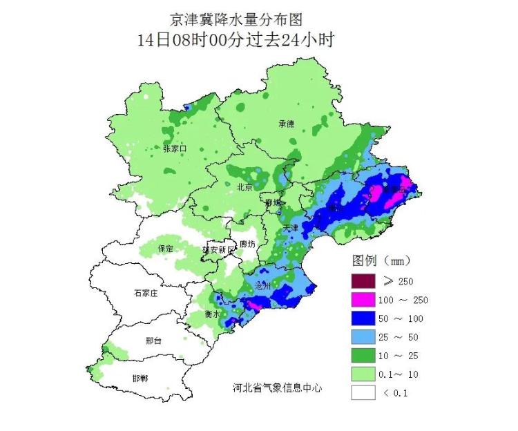河北省氣象臺(tái)7月14日8時(shí)發(fā)布天氣實(shí)況:13日8時(shí)至14日8時(shí),張家口、承德、唐山、秦皇島、保定中東部、廊坊北部、滄州中東部、衡水中東部、邯鄲西部等地出現(xiàn)降雨天氣,降雨區(qū)平均降水量為22.2毫米,承德南部、唐山、秦皇島、滄州中東部、衡水東北部有286個(gè)站點(diǎn)降水量超過(guò)50毫米(暴雨),其中唐山中部、秦皇島中南部、滄州南部有68個(gè)站點(diǎn)超過(guò)100毫米(大暴雨),撫寧深河最大為212.1毫米,最大小時(shí)雨強(qiáng)出現(xiàn)在撫寧鴿子塘水庫(kù),為92.2毫米。13日下午青縣、景縣出現(xiàn)8級(jí)短時(shí)大風(fēng)。