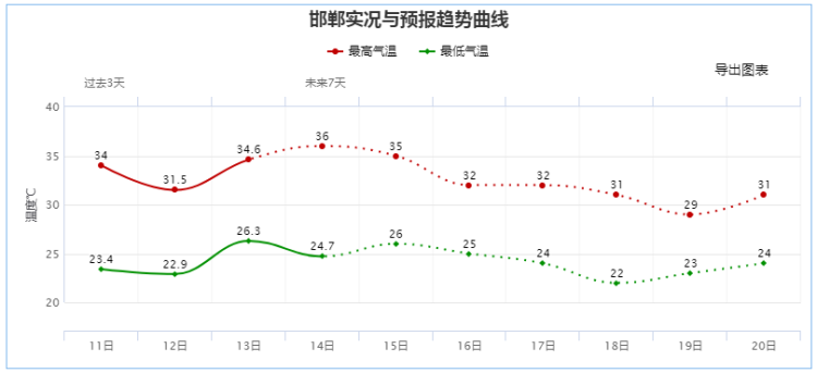 預(yù)計(jì)7月15日的最高氣溫,邯鄲還將觸摸到35℃的高溫線,其他地區(qū)在33℃左右,搭配高濕度,悶熱感明顯。