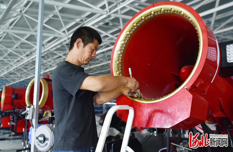 2021年7月19日,位于河北省張家口市宣化區(qū)京張奧園區(qū)的卡賓滑雪裝備制造有限公司的員工在裝配造雪機(jī)。河北省張家口市宣化區(qū)發(fā)揮裝備制造技術(shù)優(yōu)勢,走綠色發(fā)展之路,推進(jìn)冰雪產(chǎn)業(yè)園建設(shè),不斷延伸冰雪產(chǎn)業(yè)鏈。目前,該區(qū)冰雪裝備制造企業(yè)有18家,年產(chǎn)值1.8億元,帶動(dòng)就業(yè)3000余人。 通訊員 陳曉東 攝影報(bào)道