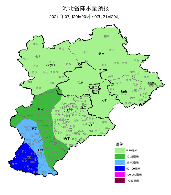 7月20日夜間到21日,全省陰有分散性雷陣雨或陣雨,其中石家莊、衡水、邢臺、邯鄲局地有中到大雨,個別地點(diǎn)有暴雨。