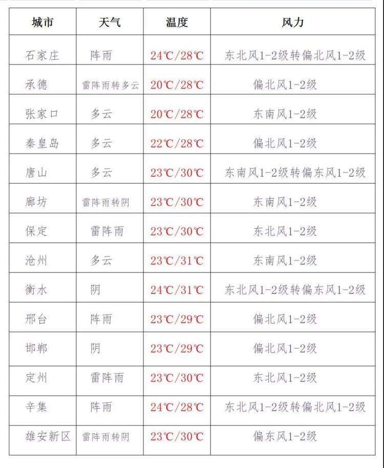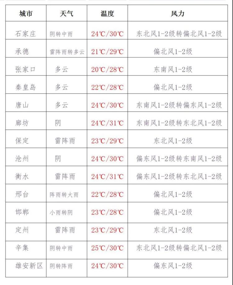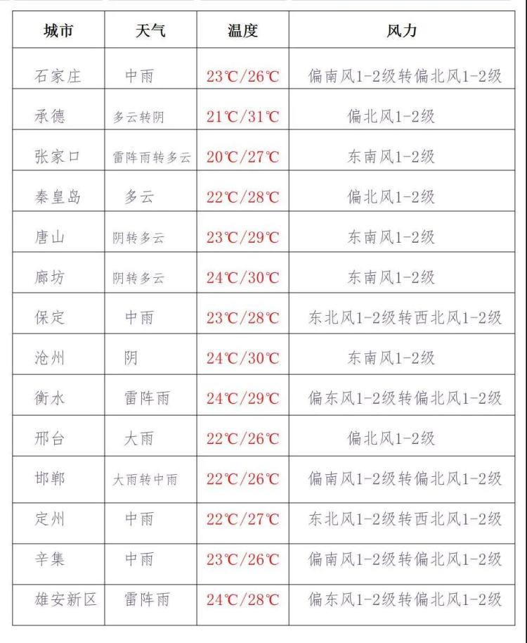 石家莊、衡水、邢臺、邯鄲局地有中到大雨,