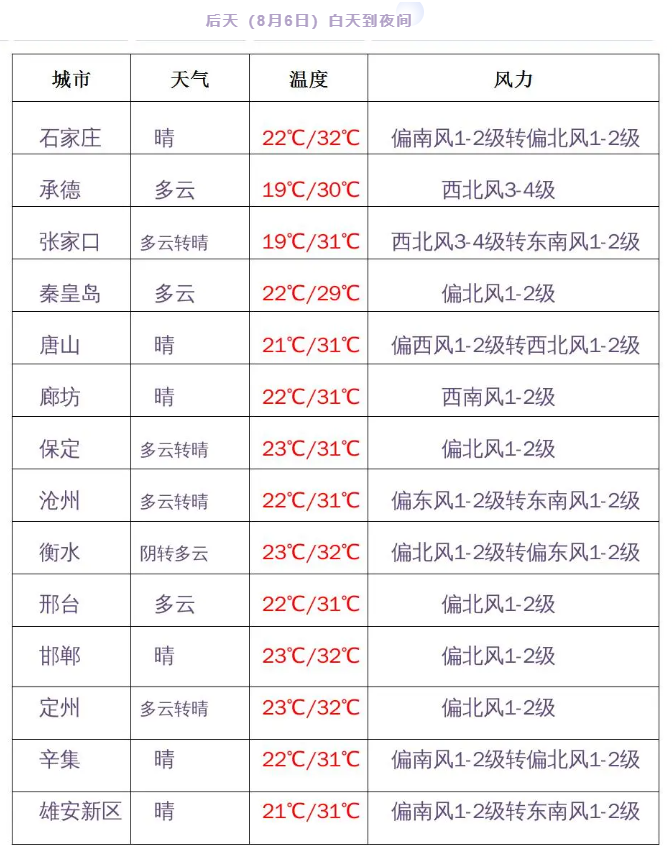 8月6日夜間到7日,石家莊、邢臺(tái)、邯鄲三個(gè)地區(qū)的西部多云間陰,其他晴間多云。