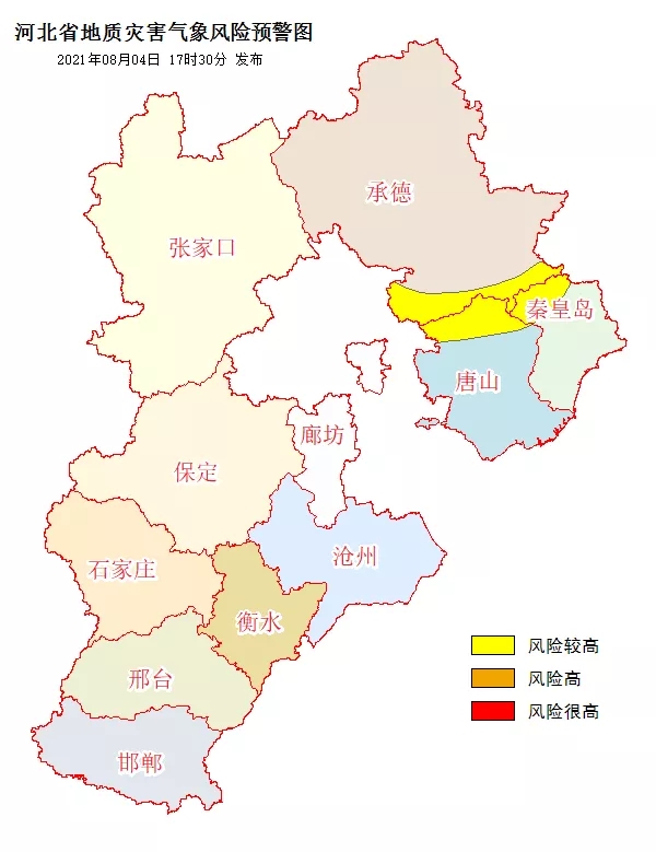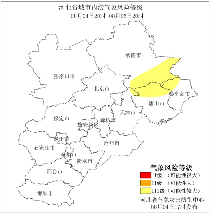 河北省氣象災(zāi)害防御中心2021年08月04日17時發(fā)布城市內(nèi)澇氣象風(fēng)險等級預(yù)報: