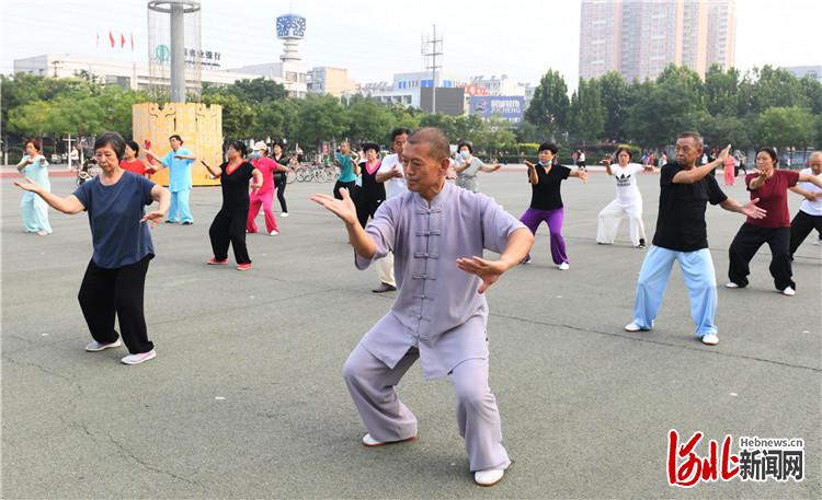 8月8日,在石家莊新樂市文化廣場,市民在練太極拳健身。 當日是全民健身日,各地舉行豐富多彩的健身活動,倡導文明健康的生活方式。 河北日報通訊員 賈敏杰攝
