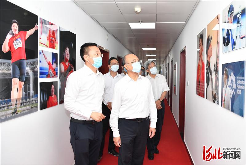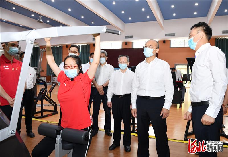 8月6日,省長許勤到省體育局調(diào)研并主持召開省冬奧工作領(lǐng)導(dǎo)小組指揮調(diào)度視頻會議。這是許勤來到省體育局調(diào)研數(shù)字化體能訓(xùn)練康復(fù)工作,聽取東京奧運會參賽、全運會備戰(zhàn)等情況介紹。 河北日報記者 孟宇光攝