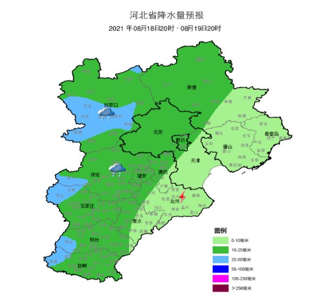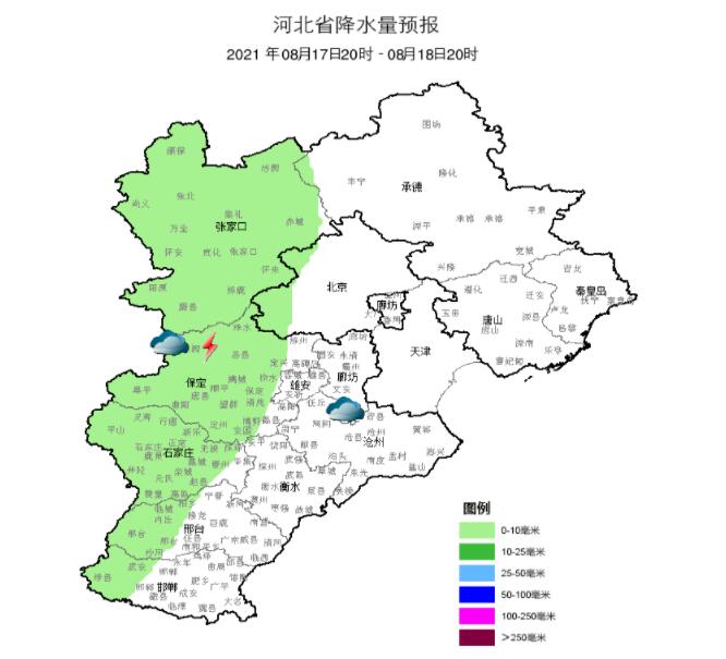 明天(8月17日)夜間到18日,張家口、保定、石家莊、邢臺西部、邯鄲西部多云轉(zhuǎn)陰有雷陣雨或陣雨,其他地區(qū)多云。