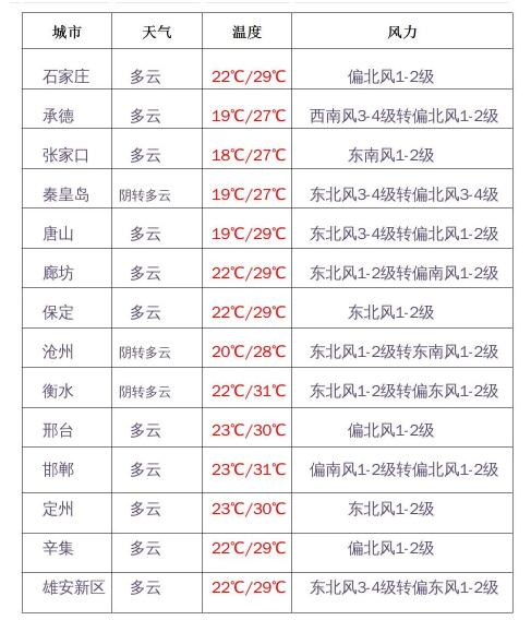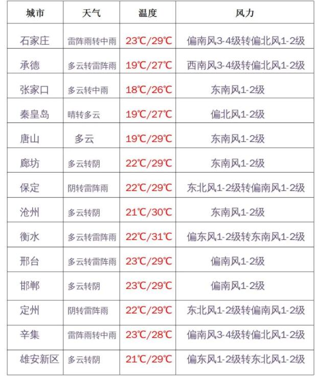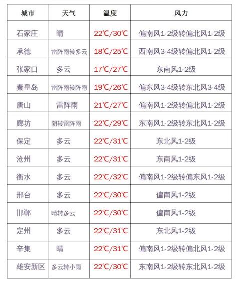 今天下午到夜間,保定、廊坊及以北地區(qū)和滄州多云間陰有雷陣雨或陣雨,局地有中到大雨,個別地點有暴雨,雷雨時局地伴有短時強降水、短時大風等強對流天氣;其他地區(qū)晴間多云。