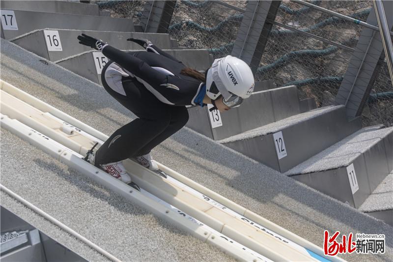 圖為運動員在淶源國家跳臺滑雪訓練科研基地訓練。 通訊員 羅大慶攝