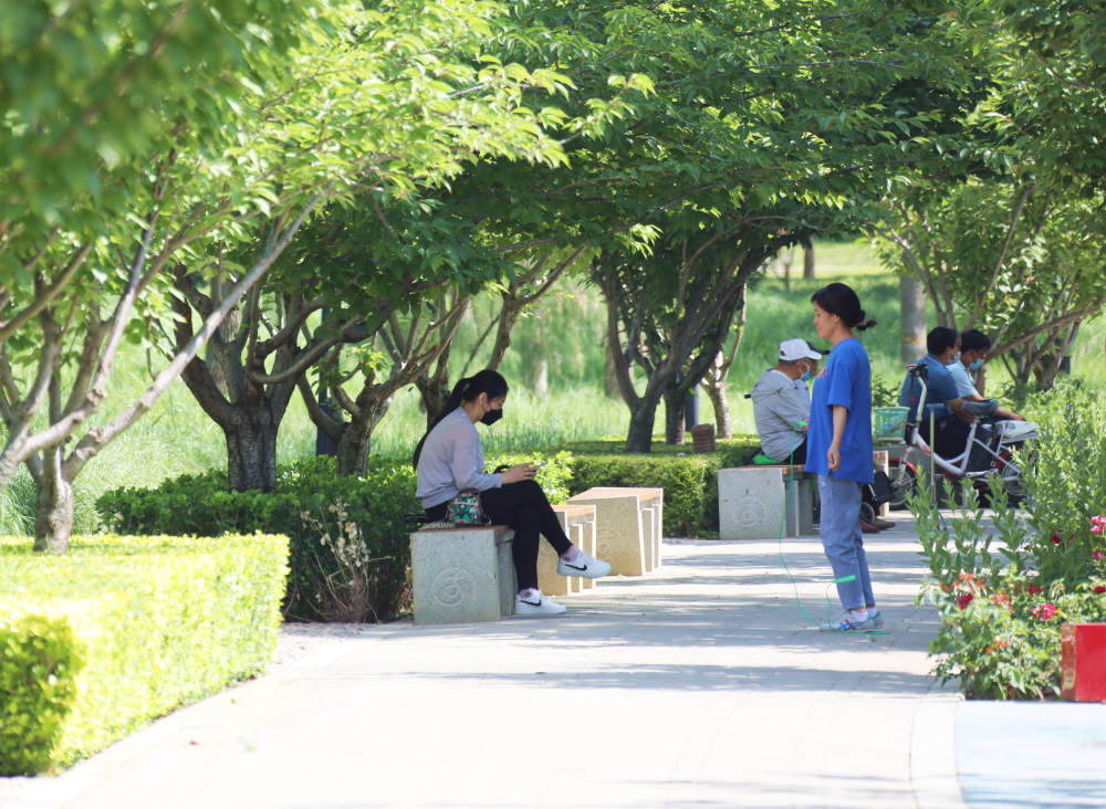 6月2日,居民在固安縣濱河生態(tài)運(yùn)動公園休閑。(門叢碩 攝)