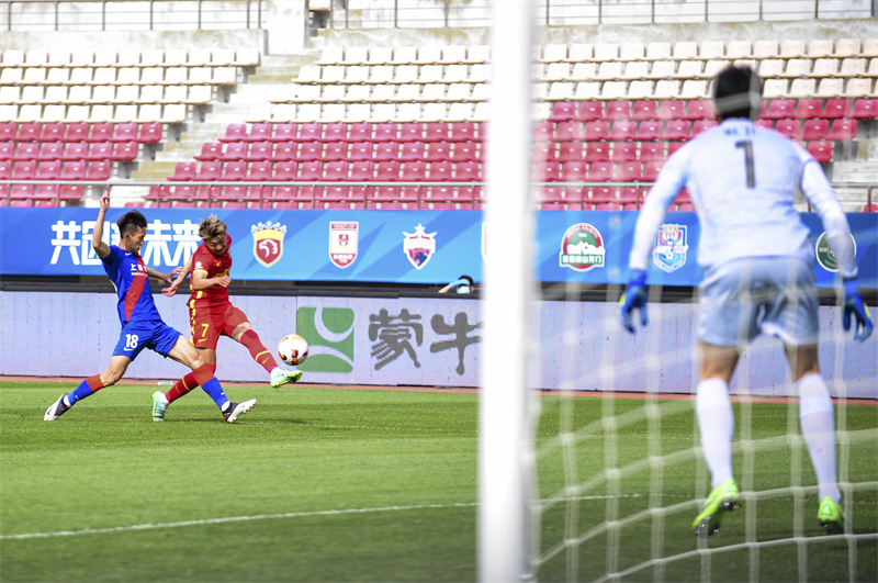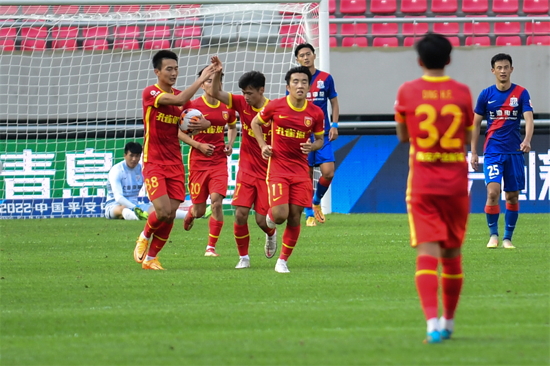 當日,在遼寧大連舉行的2022賽季中國足球協(xié)會超級聯(lián)賽第四輪比賽中,上海申花隊以3比1戰(zhàn)勝河北隊。新華社記者 王乙杰 攝