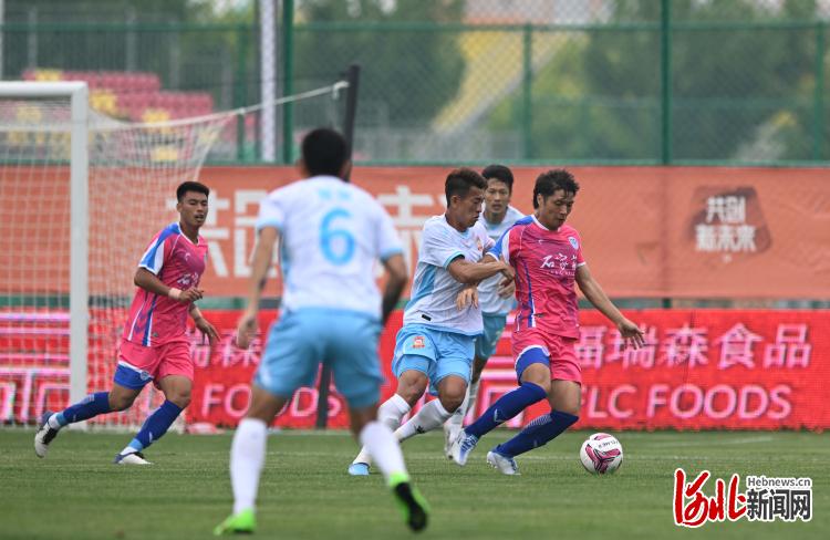 石家莊功夫球員汪嵩(右一)在比賽中帶球。 河北日報記者耿輝攝