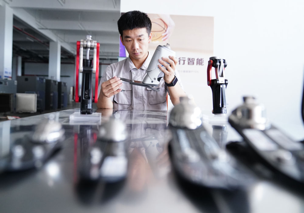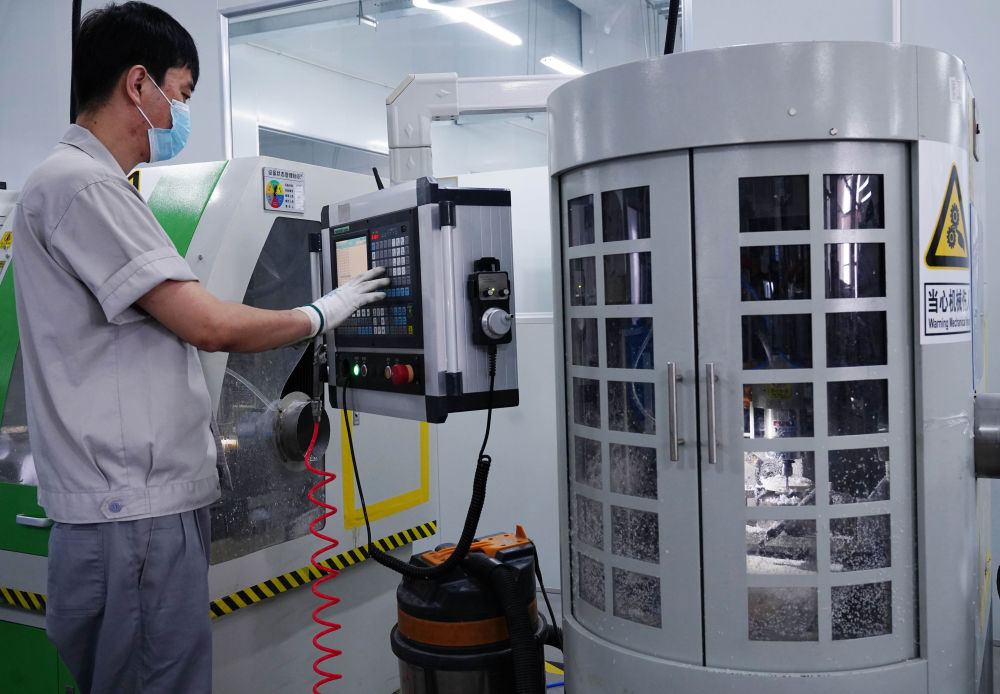 ↑9月14日,秦皇島開(kāi)發(fā)區(qū)內(nèi)一家康復(fù)輔助器具生產(chǎn)企業(yè)的工人在調(diào)試設(shè)備。(王繼軍 攝)