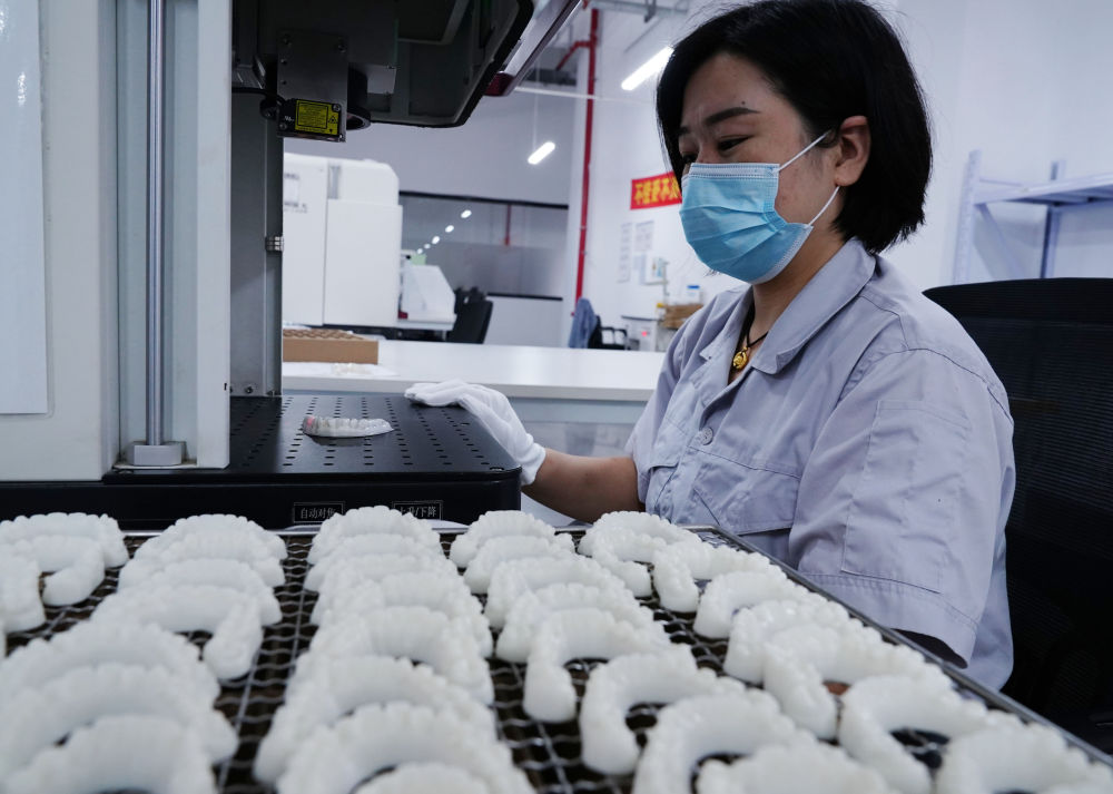 ↑9月14日,秦皇島開(kāi)發(fā)區(qū)內(nèi)一家健康醫(yī)療企業(yè)的工人在檢測(cè)設(shè)備。(王繼軍 攝)