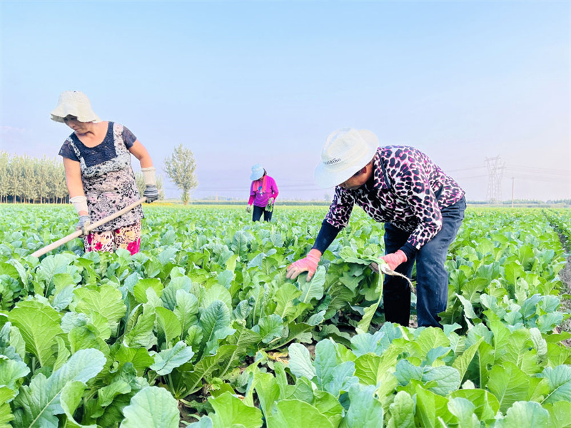 ↑9月14日,在淶水縣南義安村,農(nóng)民正在蘿卜地里除草、間苗。(李金璐 攝)