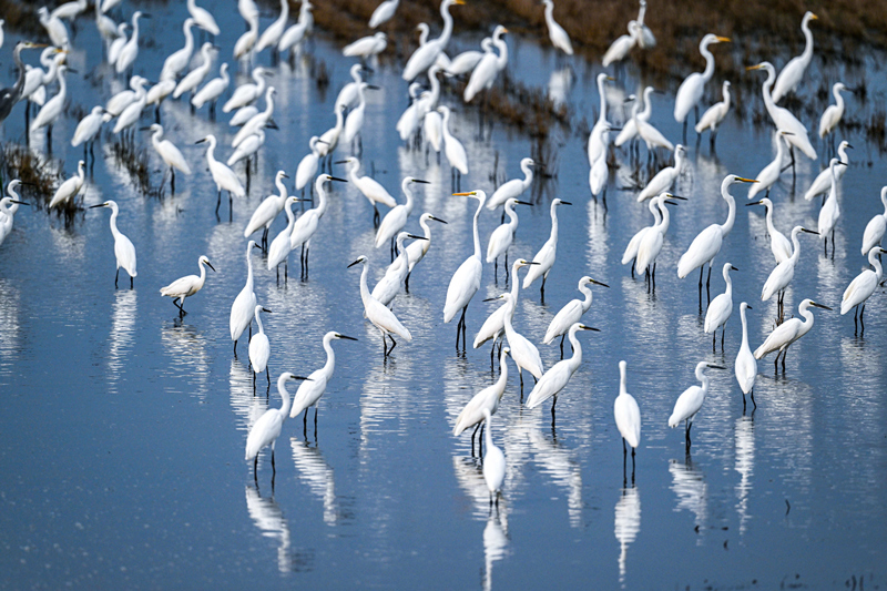 煙波浩渺的白洋淀里140多個淀泊星羅棋布,這里是我國候鳥遷徙通道上重要的停歇地、繁殖地和越冬地,是濕地水鳥集中分布區(qū)。為保護野生鳥類,雄安新區(qū)在白洋淀劃定了9個鳥類重要棲息地,白洋淀濕地全域列為禁獵區(qū)、全年為禁獵期,最大限度減少人類干擾。