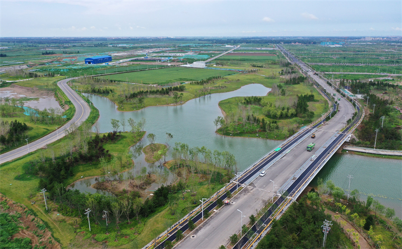 這是河北雄安新區(qū)啟動區(qū)中央綠谷生態(tài)廊道一角(2022年7月28日攝,無人機照片)。 新華社記者 朱旭東 攝