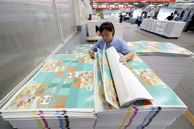 8月11日,在位于石家莊的河北新華第二印刷有限責(zé)任公司,工人對教材印刷品進(jìn)行檢查。
