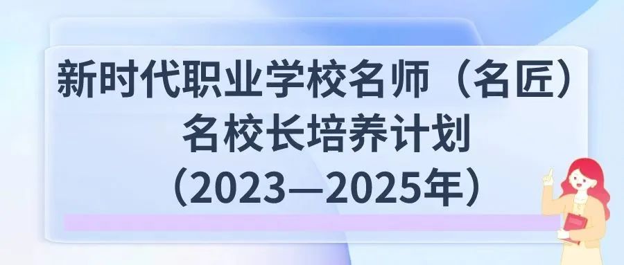 新時代職業(yè)學(xué)校名師(名匠)名校長培養(yǎng)計劃(2023—2025年)(簡稱職教“三名”計劃),是以3年為一個培養(yǎng)周期,遴選職業(yè)學(xué)校骨干教師、校長進行專項培養(yǎng),旨在打造一批理想信念堅定、師德高尚、教育教學(xué)能力和專業(yè)實踐能力突出的雙師型名師(名匠),一批辦學(xué)理念先進、辦學(xué)定位準確、勇于開拓創(chuàng)新、精通現(xiàn)代職業(yè)學(xué)校治理的教育家型名校長。通過建立推薦、培養(yǎng)、管理、使用一體化的培養(yǎng)體系和管理機制,搭建國家級名師、名校長工作室和名匠技藝技能傳承創(chuàng)新平臺,發(fā)揮名師(名匠)名校長示范引領(lǐng)作用。