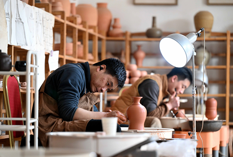 2月27日,在河北省石家莊市一家文化創(chuàng)意產(chǎn)業(yè)園,工藝師制作文創(chuàng)產(chǎn)品。新華社發(fā)(陳其保攝)