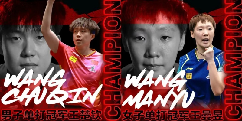 >>17日,中國(guó)隊(duì)選手王楚欽、王曼昱分別奪得WTT新加坡大滿貫?zāi)袉、女單冠軍?/p>