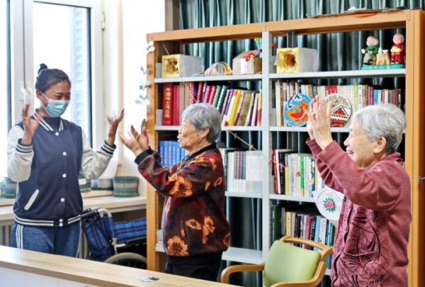 國康秦皇島醫(yī)養(yǎng)康養(yǎng)老中心的老人們在做保健操。