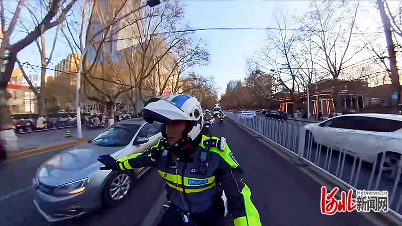 邯鄲交巡警機(jī)動執(zhí)勤一大隊(duì)鐵騎在為救護(hù)車開辟通道。(視頻截圖)