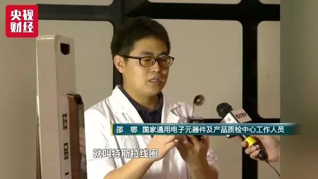 國家通用電子元器件及產(chǎn)品質(zhì)檢中心工作人員邵鄂:網(wǎng)上這個小黑盒,專業(yè)術(shù)語叫特斯拉線圈。它的外形構(gòu)造就是一個小黑盒,只要把按鍵按下,就產(chǎn)生一個瞬態(tài)的電磁場。
