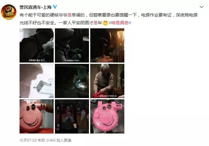 “@警民直通車-上!眳s“不合時(shí)宜”地提醒網(wǎng)友:電焊作業(yè)要有證,深夜燒電焊光線不好也不安全。一家人平安團(tuán)圓才是年。對(duì)此,網(wǎng)友的評(píng)論是:“官微好皮!”