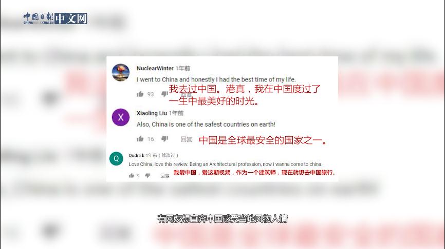2018年12月23日,旅游博主“Travellight”在YouTube發(fā)布題為“我太想念中國”的視頻,該視頻點擊量高達12.1萬次。她在視頻中表示,剛剛離開中國幾個月,就迫不及待地想回來。