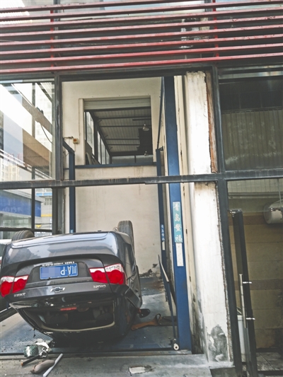 人車都“受傷”后,車商方面并未就此事與林朝陽(yáng)進(jìn)行協(xié)商。4月19日上午,林朝陽(yáng)與成都商報(bào)-紅星新聞?dòng)浾咭黄饋?lái)到成都建國(guó)汽車紅牌路二手車門店。記者在現(xiàn)場(chǎng)發(fā)現(xiàn),升降梯入口的門處于成都建國(guó)汽車紅牌樓綜合展廳的一個(gè)邊角處,離一樓地面高度約6米。該展廳一樓銷售各種品牌的新車,二樓銷售二手車,從二樓將車開(kāi)到一樓,這臺(tái)升降梯是唯一的通道,每輛出展廳的車都需在展廳一端左拐進(jìn)入升降梯。升降梯未升起時(shí),門外面實(shí)為斷頭路。