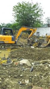 一輛挖掘機(jī)在清理報(bào)廢共享單車。