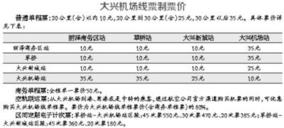 大興機場線票制票價