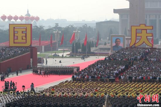 10月1日上午,慶祝中華人民共和國(guó)成立70周年大會(huì)在北京天安門(mén)廣場(chǎng)隆重舉行。中新社記者 盛佳鵬 攝
