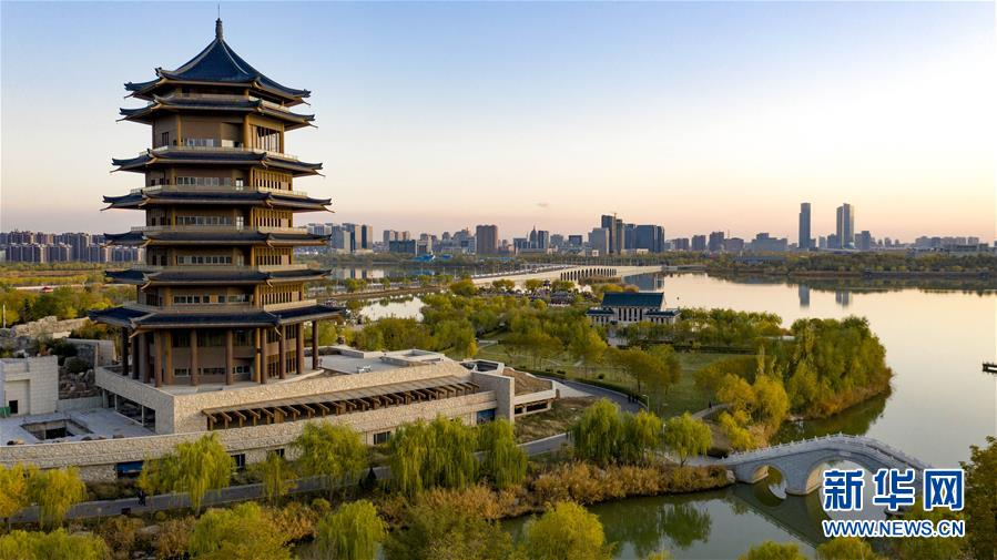 這是11月2日無人機拍攝的銀川市閱海公園秋景。新華社記者 馮開華 攝