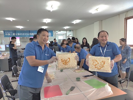中國三星不僅邀請專家走進(jìn)村莊“會診把脈”,對合作社成員進(jìn)行針對性培訓(xùn),也多次帶領(lǐng)村民走出村莊,進(jìn)行國內(nèi)外考察與交流。2019年8月,中國三星組織包括段春亭在內(nèi)的10名三星“分享村莊”帶頭人前往韓國,與韓國專家、村長一起分享、交流農(nóng)村發(fā)展經(jīng)驗(yàn)。這是我國首個扶貧村帶頭人海外交流活動,也是中國三星“分享式”扶貧的又一次創(chuàng)新。