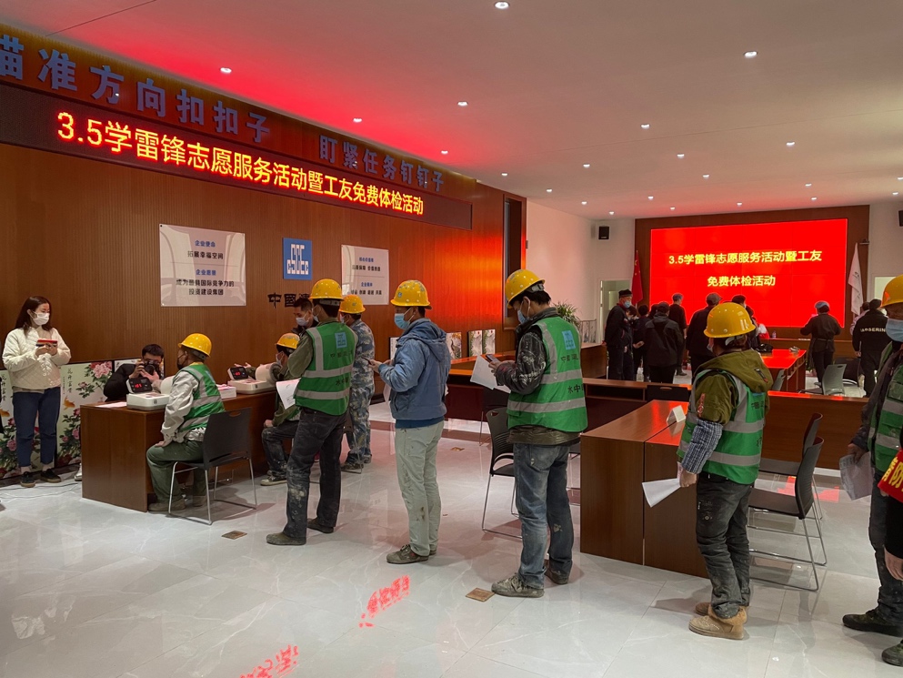 3月5日雷鋒日,中建三局雄安容東G2項目邀請容城縣人民醫(yī)院為新區(qū)建設(shè)工人免費體檢,現(xiàn)場200多名工友陸續(xù)參與其中。體檢主要包括了血壓檢測、血糖、血脂測定、心電圖等項目。